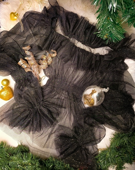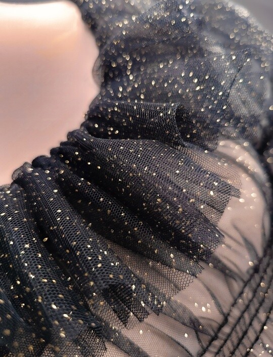 Мягкая сетка глубокого черного цвета и мерцающее золото.